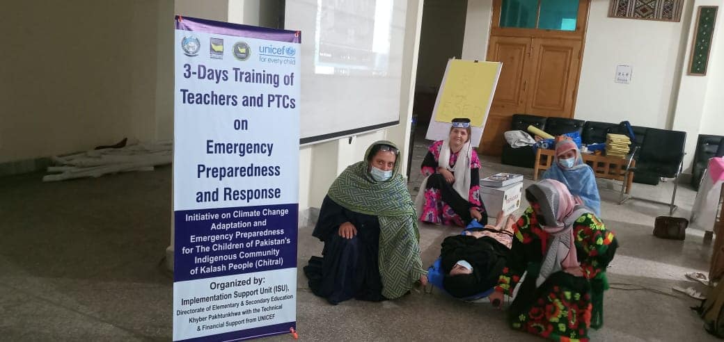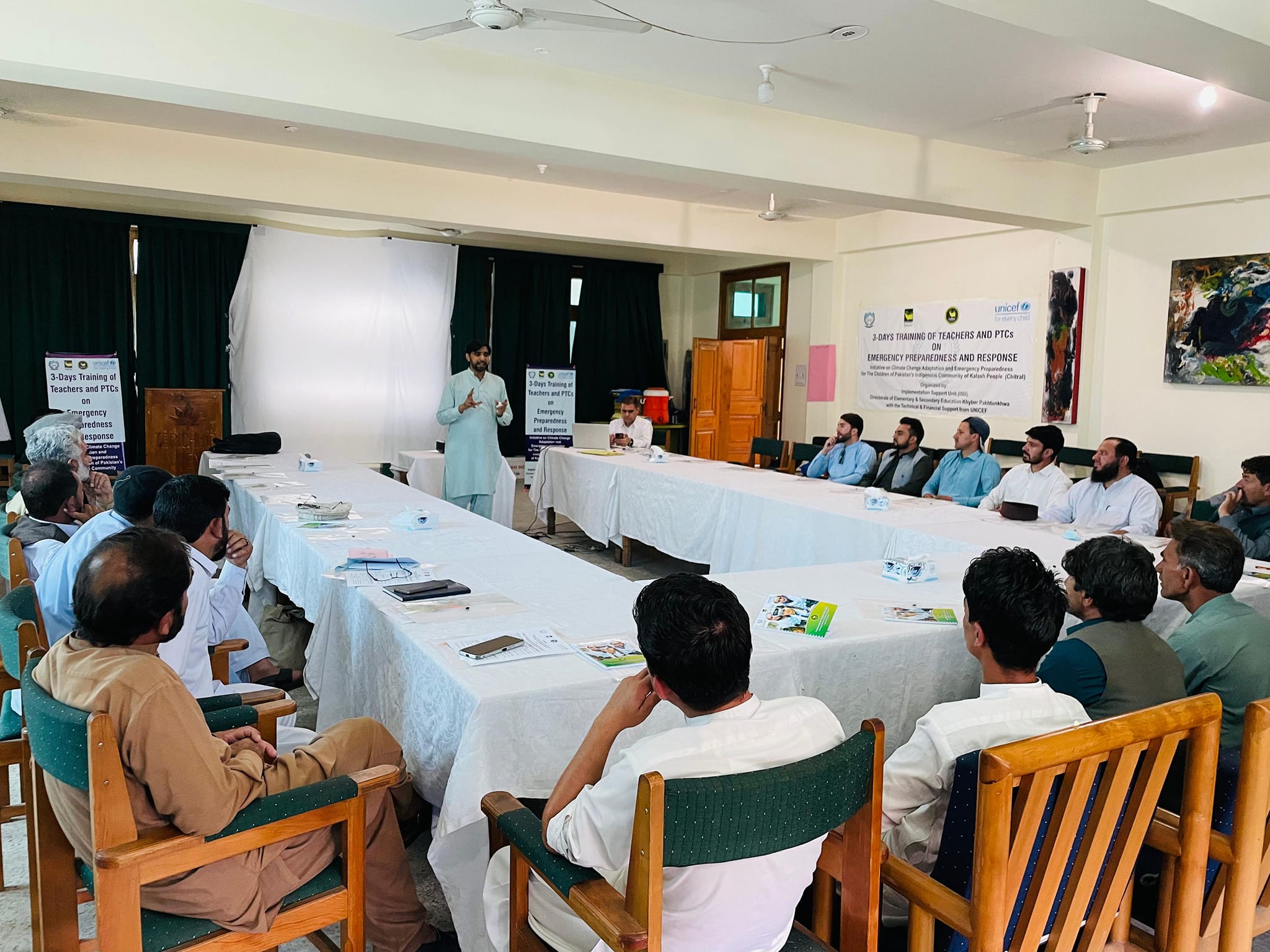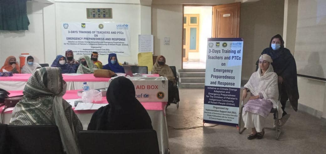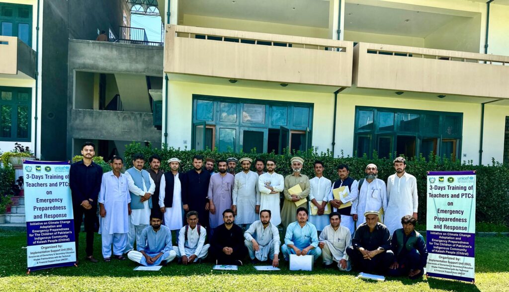 Implementation Support Unit – DoE & SE KP with the the technical and financial Support of UNICEF successfully completed 2 Rounds of 3-days training of teachers and PTCs on emergency Preparedness and response under”Initiative on Climate Change Adaptation and Emergency Preparedness for The Children of Pakistan’s Indigenous Community of Kalash People” at Terichmir view Hotel Chitral in which 108 ( 48 male and 60 female) participated .these Trainings were monitored by Mr. Arshad khan( Assistant Director and Focal Person), officials of Department of Eduction of District Chitral and other officials of ISU.